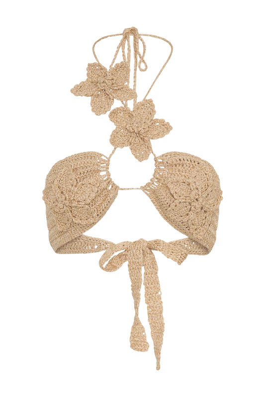 £4959% offRiver Floral Crochet Bikini Top - Gold