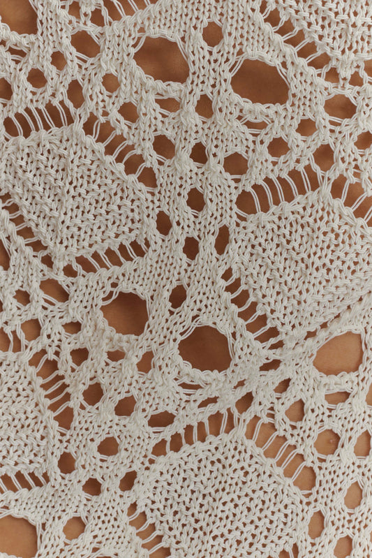 Amari Knit Crochet Knit Mini Dress - Ivory