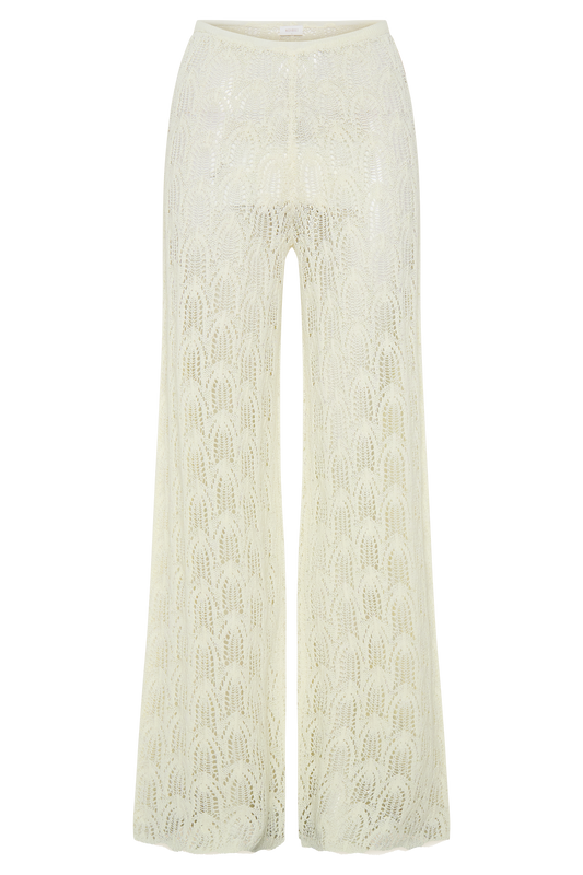 Mania Crochet Long Sleeve Cropped Top - Ivory