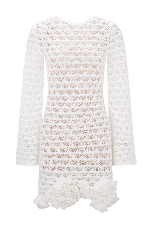 Aileen Ruffle Crochet Mini Dress - Ivory