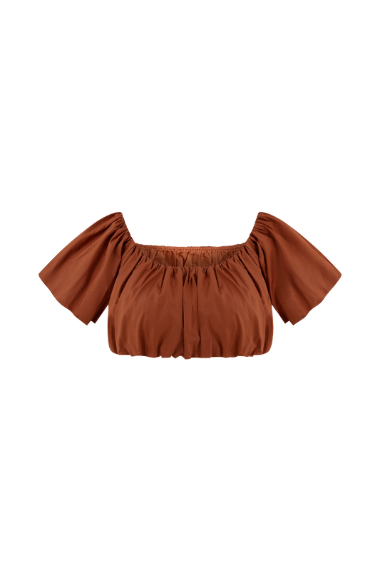 Autumn Off Shoulder Bubble Top - Burnt Orange
