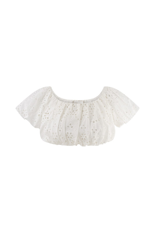 Off Shoulder Broderie Top - White