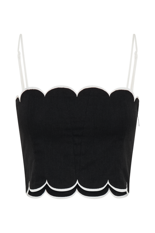 Scalloped Linen Top - Black