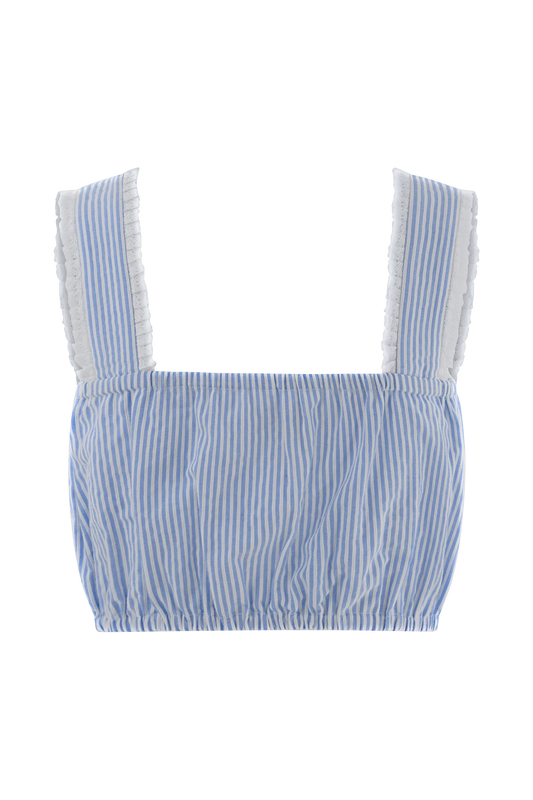 Gretel Sleeveless Crop Top - Blue Pinstripe