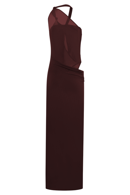 Edwina Knotted Mesh Maxi Dress - Mahogany