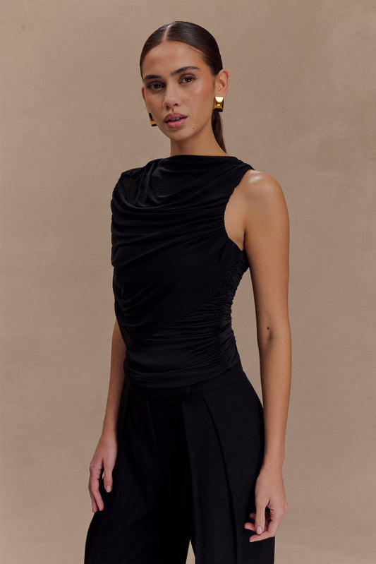 Raya Mid Rise Wide Leg Linen Pant - Black