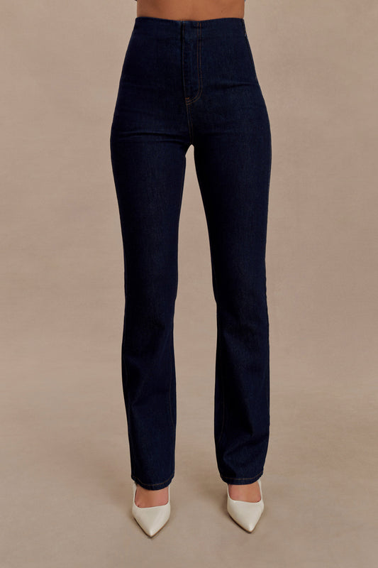 Jen Wide Leg Flare Denim Jeans - Dark Blue