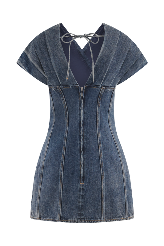 Merlyn Denim Cotton Mini Dress - Indigo Blue
