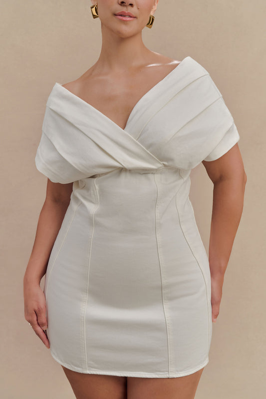 Pascale Off Shoulder Denim Mini Dress - Washed Dark Blue