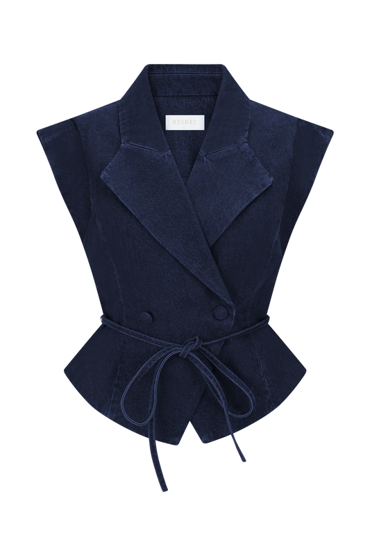 Regular price £99Unit price / perCharley Structured Tie Denim Top - Indigo Blue