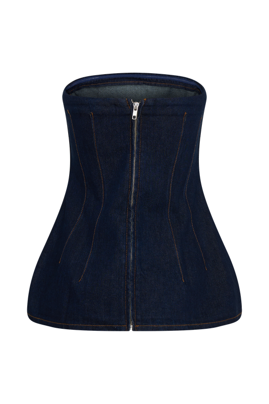 Madelyn Strapless Longline Denim Top - Indigo Blue