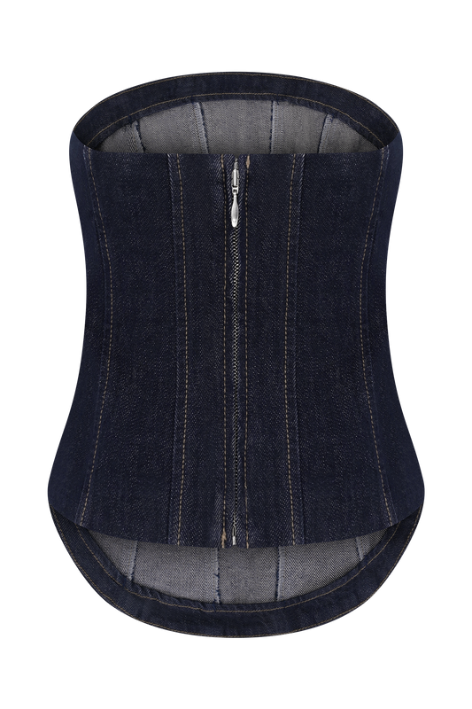 Monte Strapless Denim Corset - Washed Indigo Blue