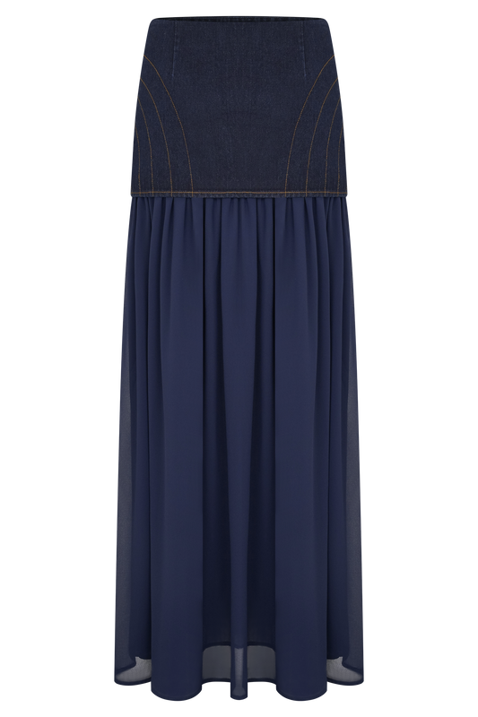 Chiffon Denim Maxi Skirt - Indigo Blue