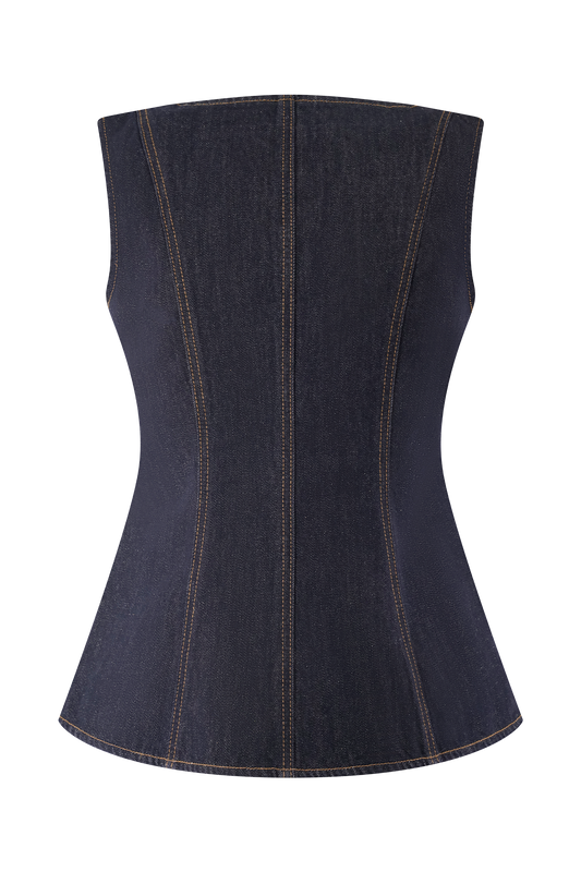 Monte Strapless Denim Corset - Washed Indigo Blue