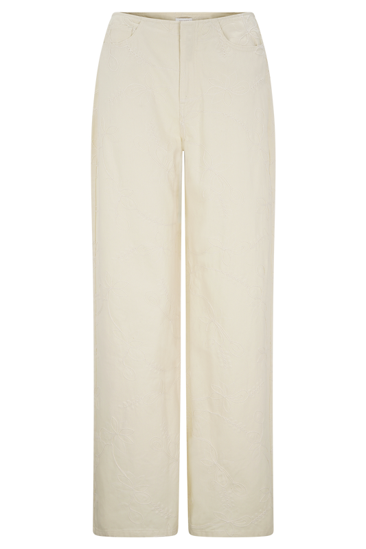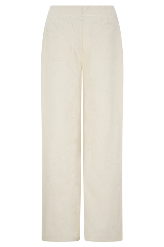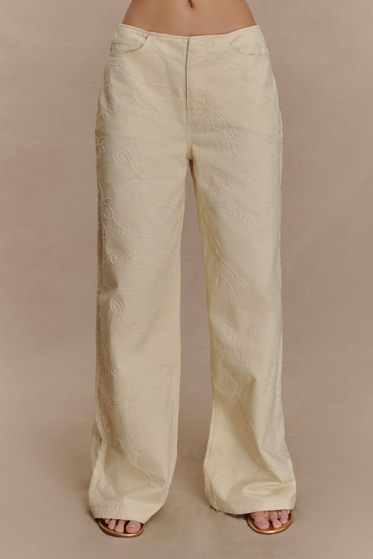 Ebony Embroidered Denim Jeans - Cream