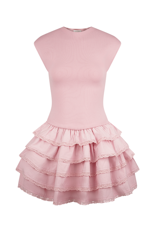 Ruffle Knit Mini Dress - Dusty Pink