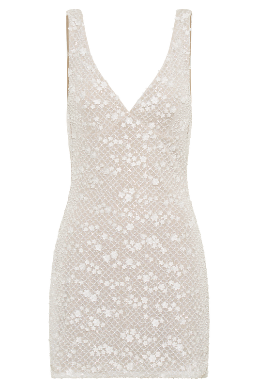 Daisy Beaded Mini Dress - White