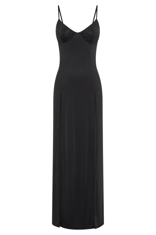 Jojo Jersey Split Maxi Dress With Diamante - Black