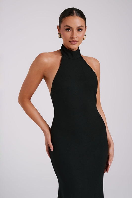 Elani Slinky High Neck Maxi Dress - Black
