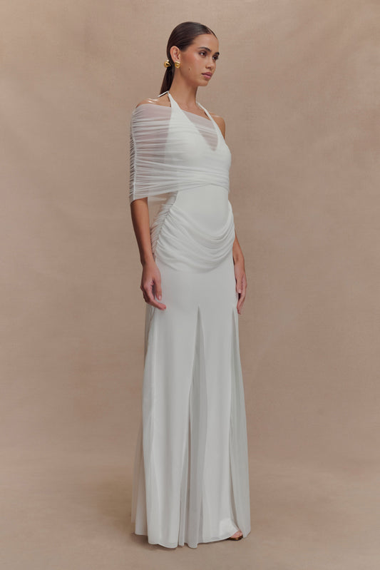 Gabrielle Slinky And Mesh Maxi Dress - White