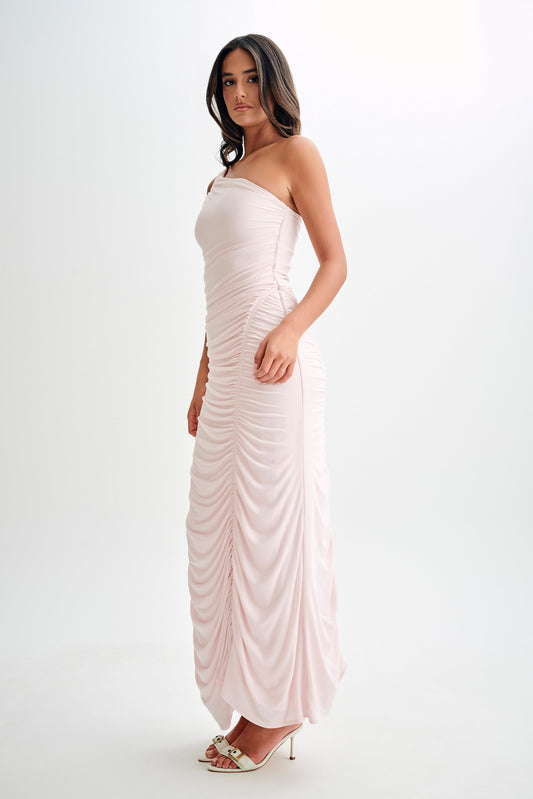 Capri Gathered Slinky Maxi Dress - Powder Pink
