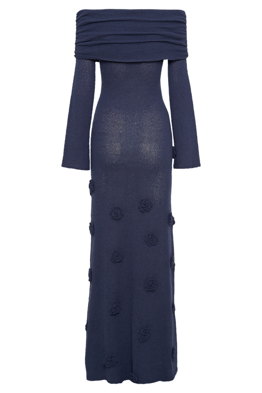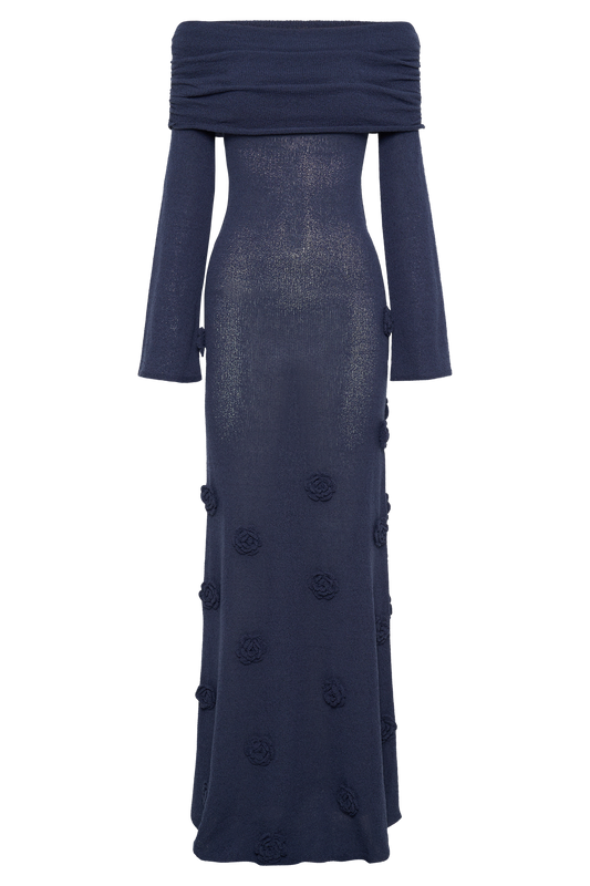 Kiki Off Shoulder Knit Rose Maxi Dress - Navy