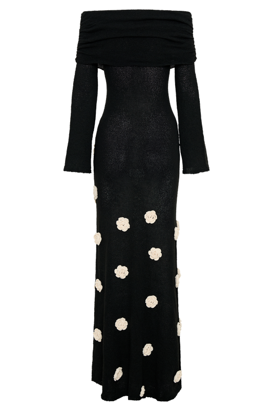 Kiki Off Shoulder Knit Rose Maxi Dress - Black/White