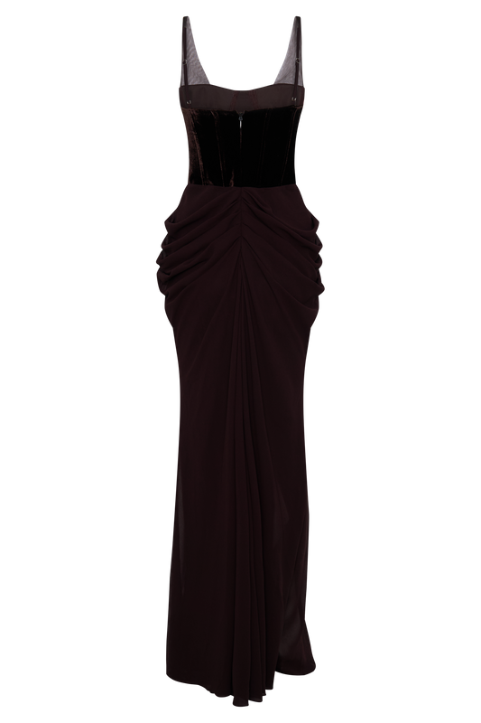 Roxanne Velvet Corset Maxi Dress - Cacao Brown