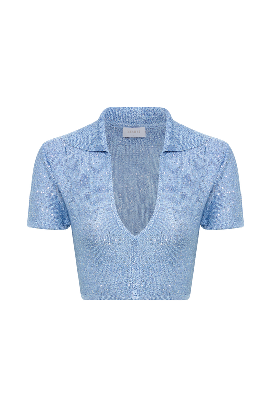 Huntley Sequin Knit Crop Top - Cornflower Blue
