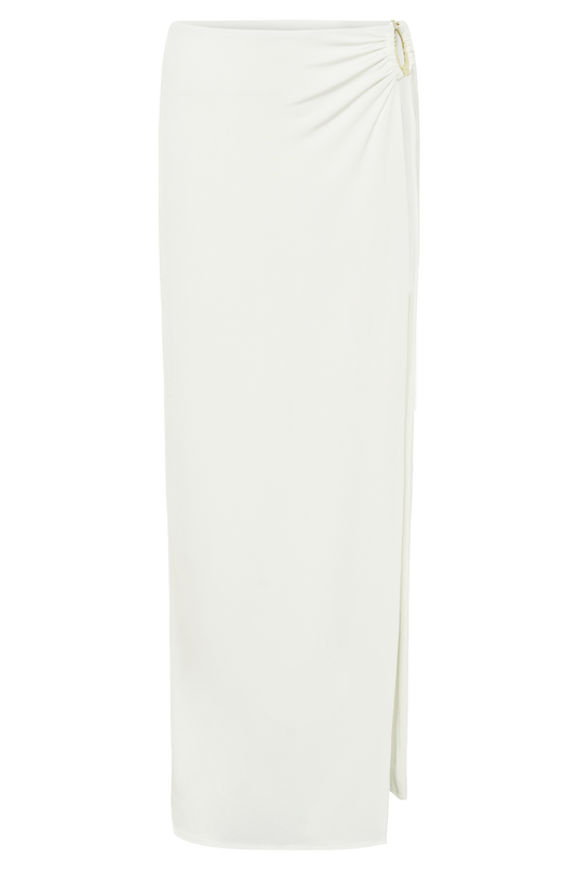 Suri Slinky Maxi Skirt With Gold Hardware - White