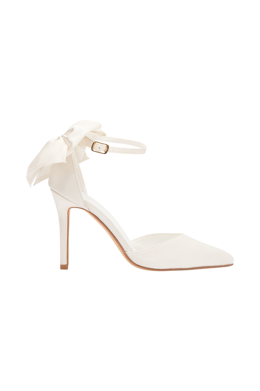 Satin Bow Heel - White