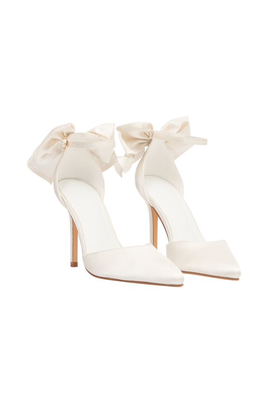 Charmed Satin Bow Heel - White