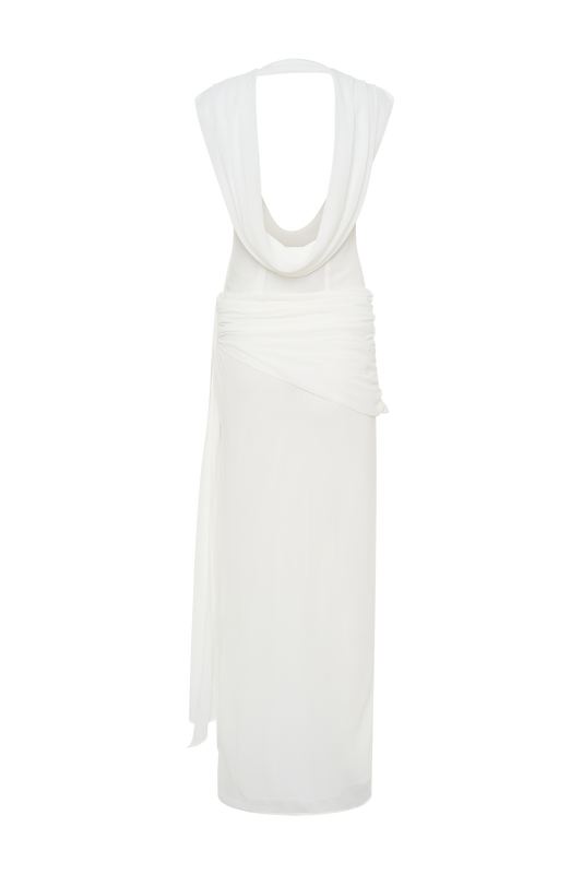 Giulia Chiffon Draped Maxi Dress - White