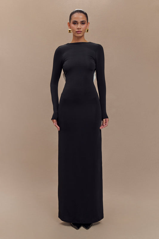 Lyndon Long Sleeve Slinky Maxi Dress - Black
