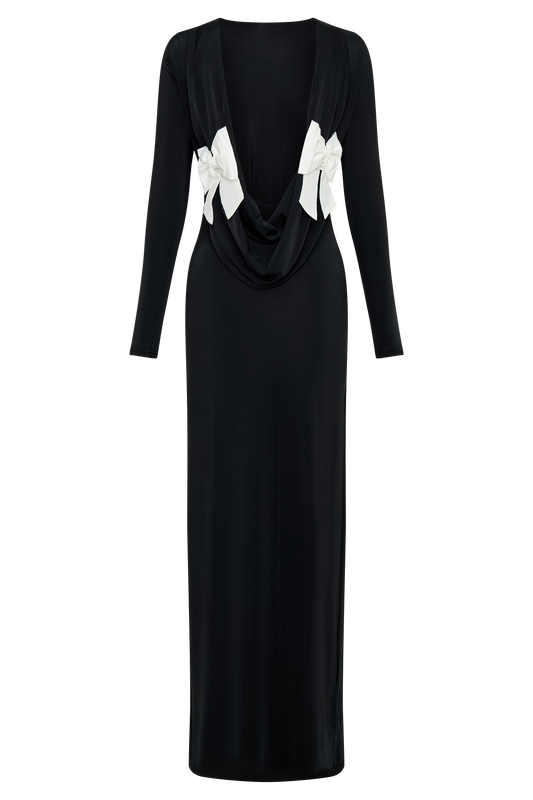 Bennett Slinky Long Sleeve Maxi Dress - Black/White
