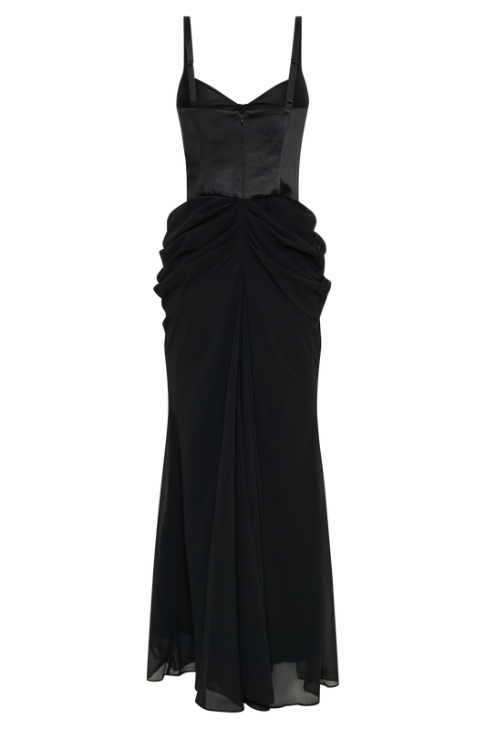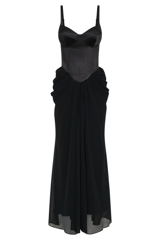 Rayleigh Long Sleeve Satin Maxi Dress - Black
