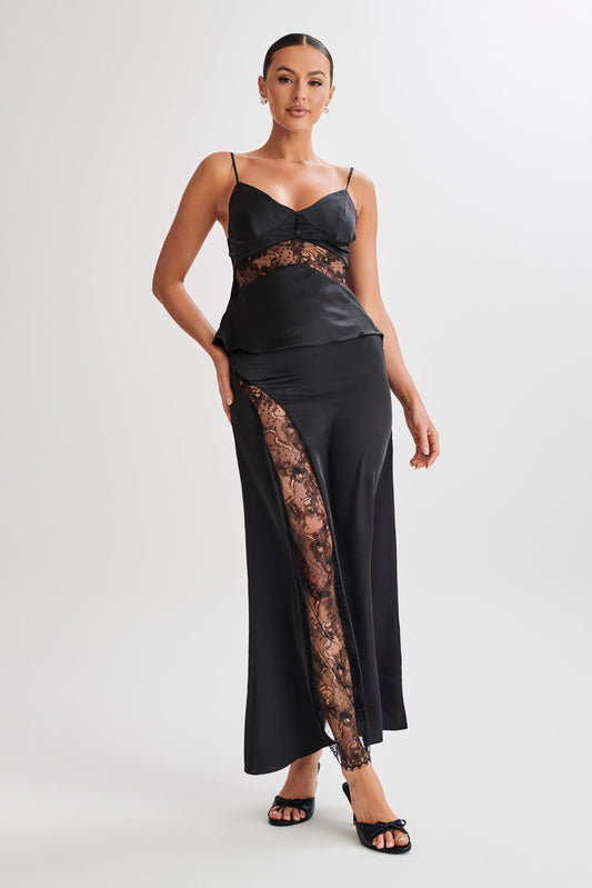 Elyssa Embroidered Contrast Midi Dress - Black/White