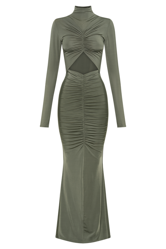 Pia Slinky Long Sleeve Cutout Maxi Dress - Military Olive