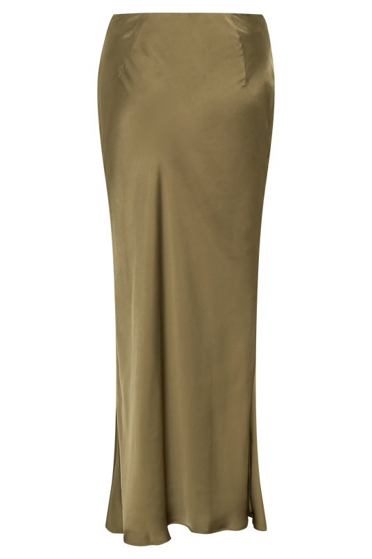 Nicola Satin Asymmetric Maxi Skirt - Basil