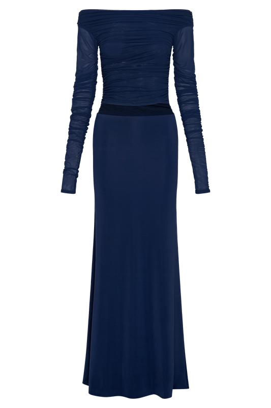 Slinky And Mesh Maxi Dress - Cobalt Blue