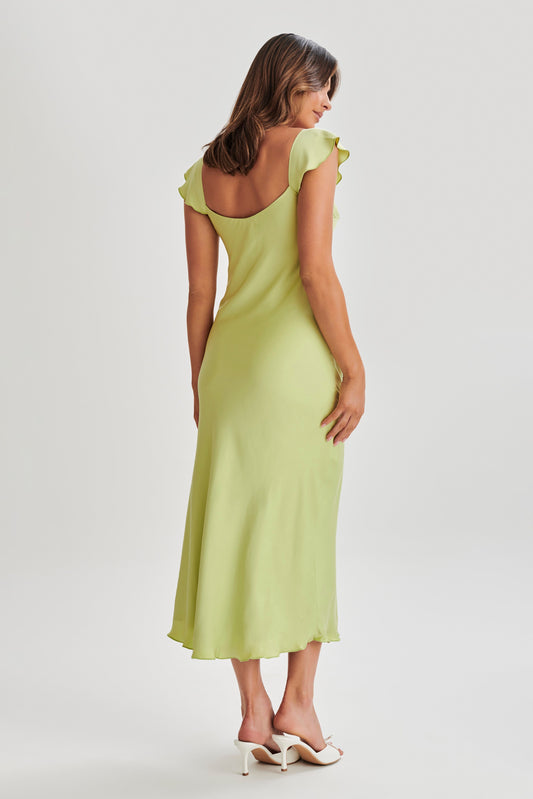 Chantal Short Sleeve Satin Midi Dress - Apple