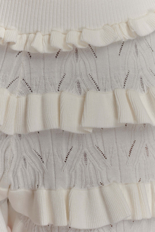 Maeve Contrast Ruffle Knit Mini Dress - Black/White
