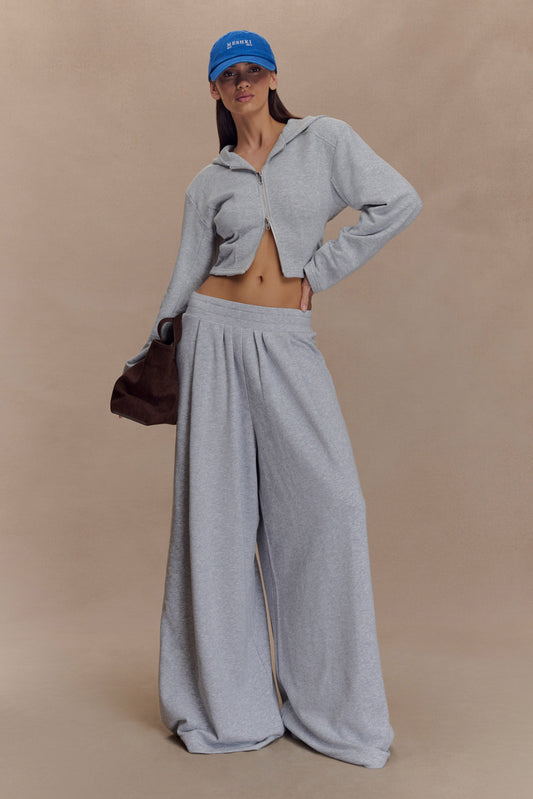 Gathered Wide Leg Jogger - Light Grey Marle