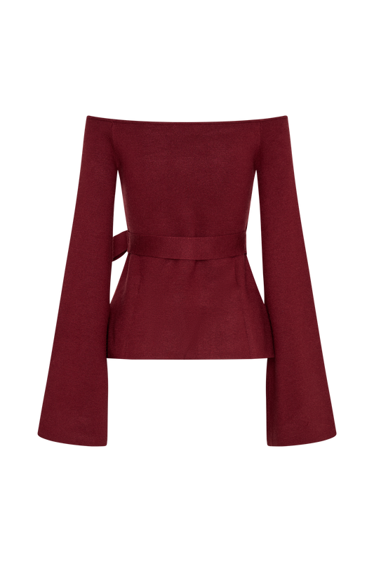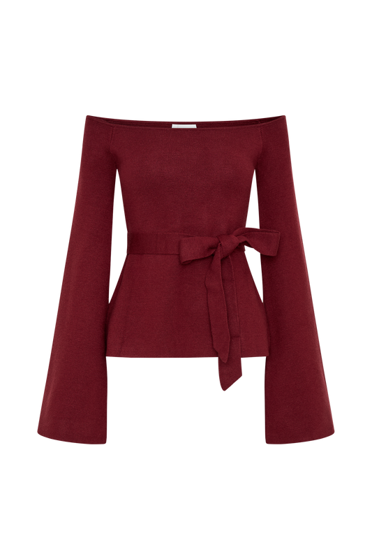Off Shoulder Knit Top - Cherry Red