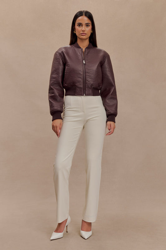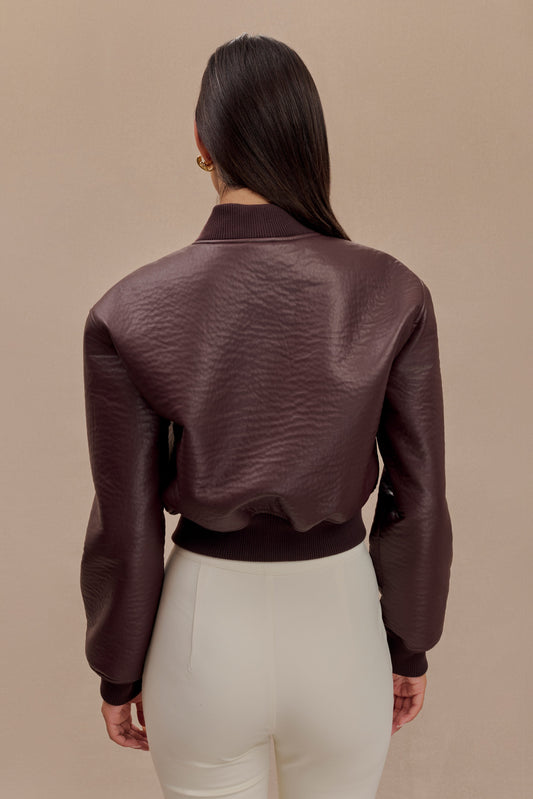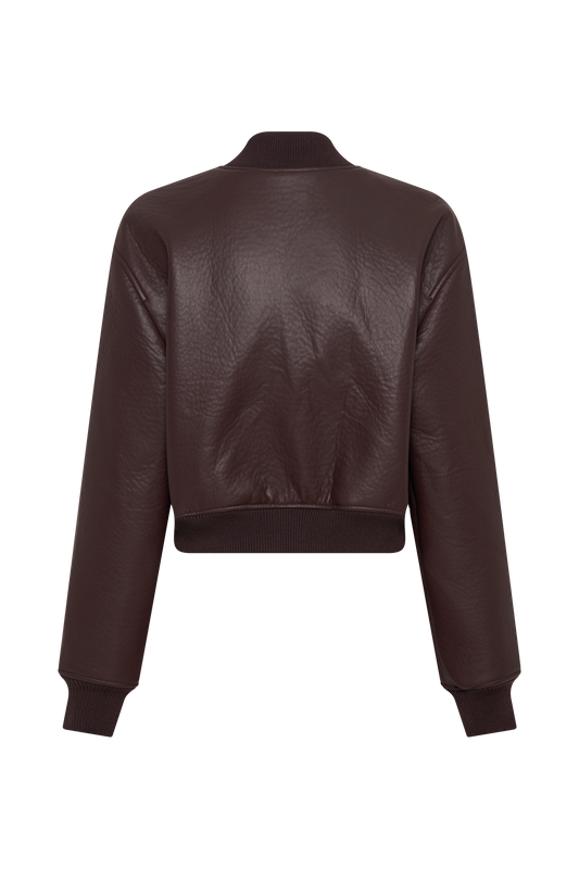 Faux Leather Bomber Jacket - Merlot