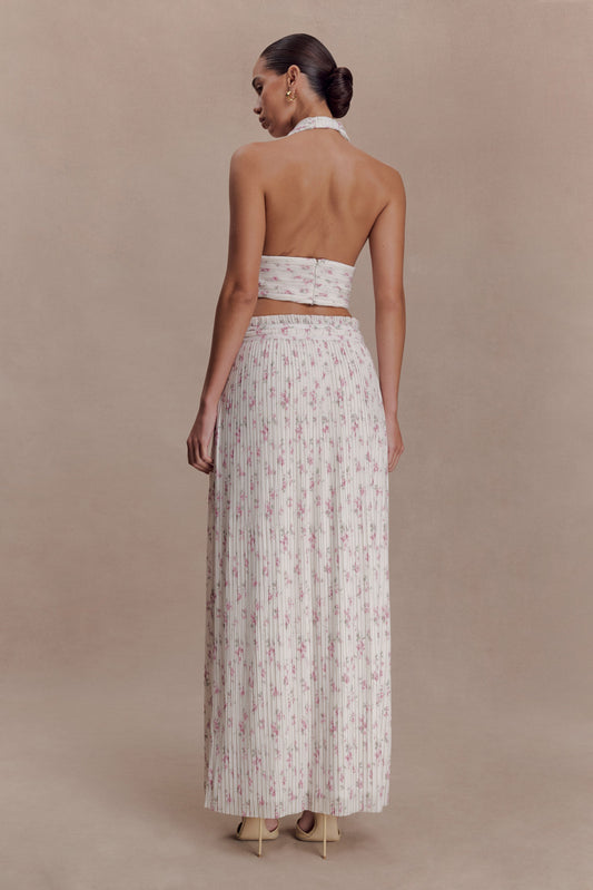 Amaris Gathered Plisse Maxi Skirt - Floral Ditsy Print