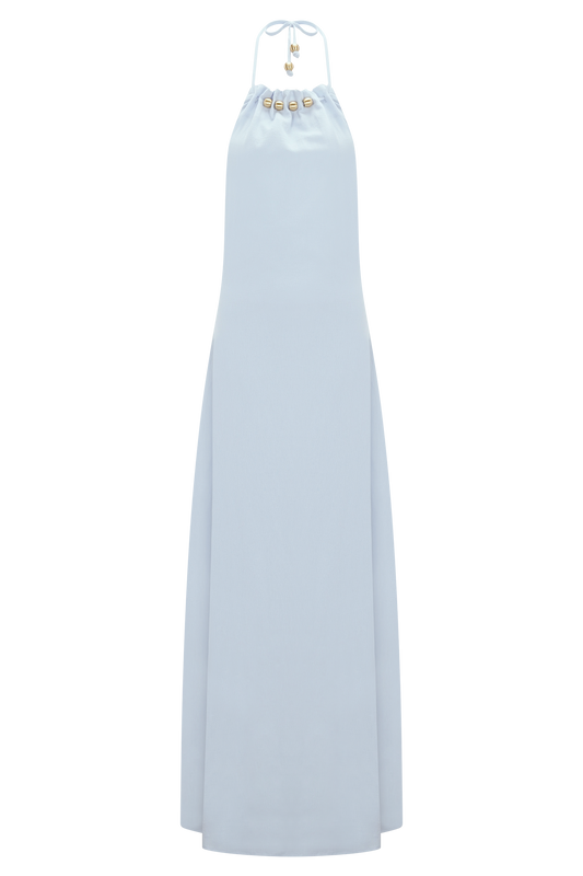 Abeda Cotton Maxi Dress With Hardware - Pale Blue