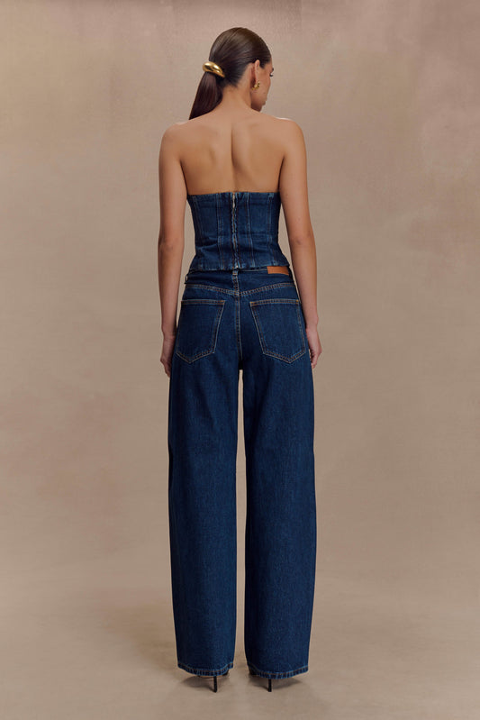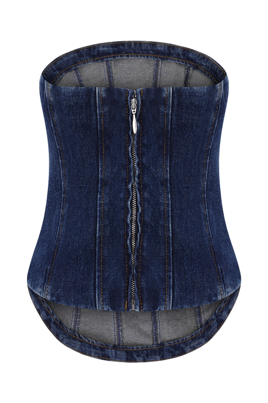 Monte Strapless Denim Corset - Washed Indigo Blue