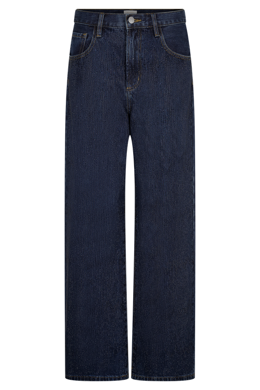 Mid Rise Diamante Denim Jeans - Midnight Blue