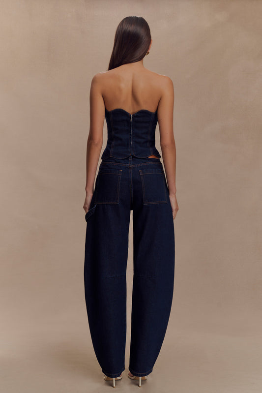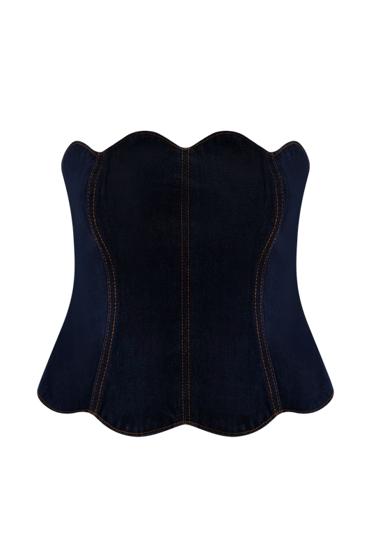 Strapless Scallop Denim Top - Indigo Blue